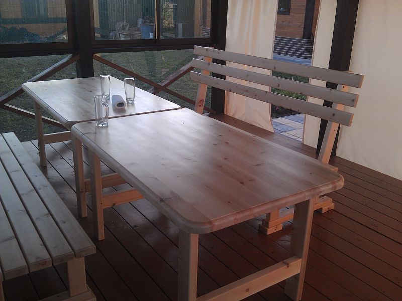 Беседка выполнена из кедра. На крыше - ондулин. Конструкция отличается простотой в установке, легкостью, долговечностью, прочностью и классическим дизайном, который впишется в любой интерьер приусадебного участка. Вокруг неё можно организовать ландшафт из вьющихся растений, которые красиво создадут зеленые "стены" снаружи и уют внутри.